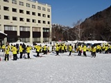 「班対抗雪だるまコンテスト」ということで、班ごとに個性豊かな雪だるまを作成しました。