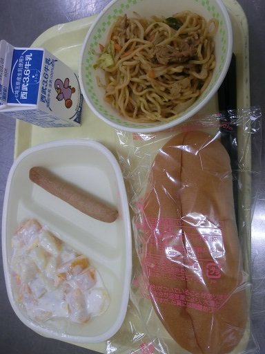 きょうはコッペパンに「ウィンナー」や「焼きそば」を挟んで食べる給食です。