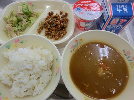 カレーライス・牛乳・大豆と小魚のから揚げ