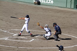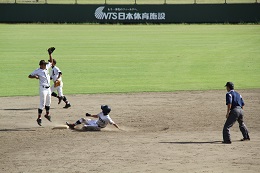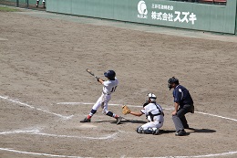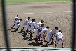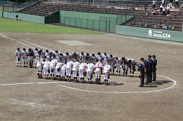 幡羅中学校は、8月9日午前8時から、常陸大宮市の総合公園野球場で1回戦山形県代表と対戦し、エース福田の好投もあり4対1で勝利しました。続く2回戦は茨城県代表と対戦し、主砲北田のライトフェンスを越える特大ホームランなど3対1で勝利しました。