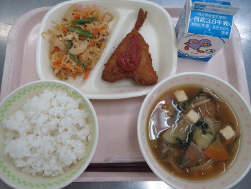 ごはん・アジフライ マスタードソースかけ・切干大根の炒り煮・
