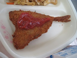 きょうのアジフライのソースは、トマト&マスタードベースです