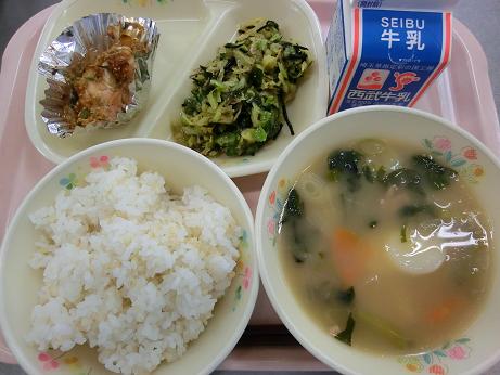 きょうは、 ごはん・牛乳・韓国風鶏の照り焼き・トックスープ 海そうサラダでした。 トックスープは、韓国で人気のトックをスープにいれています。 米の粉でできているのでスープに入れても溶けなくてモチの ような食感が楽しめます。 |