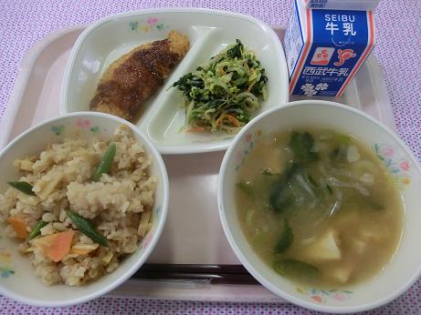 季節の献立「たけのこごはん」と「あさりのみそ汁」でした。