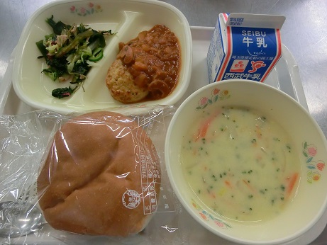 ハンバーガー・牛乳・コーンスープ・海草入りツナ