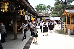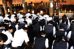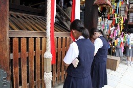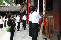 5月27日(土)天候は晴れ、最高気温25度という爽やかな日、修学旅行の最終日。各学級ごとに選んだ場所へ見学、体験等。生八つ橋や和菓子づくりも行いました。そして、多くのクラスが北野天満宮へ合格祈願に行きました。