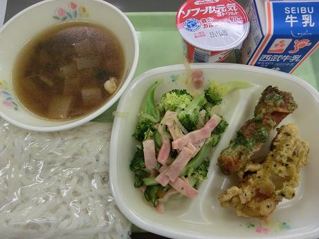 きょうは、 ねぎまうどん・牛乳・ちくわの2色揚げ・ブロッコリー サラダ・ヨーグルトでした。 ちくわの2色揚げは、青のり風味とカレーごま風味の2種類 揚げました。 ブロッコリーサラダは、レモン汁を加えてさっぱりとしたサラダ で残りが少なかったです。 |