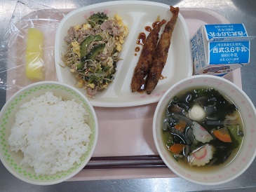苦手な人が多いと言われるゴーヤチャンプルーですが、幡羅中の生徒は