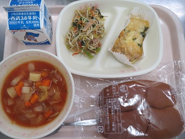 黒パン・チキン香味焼き・もやしのナムル・ミネストローネ・