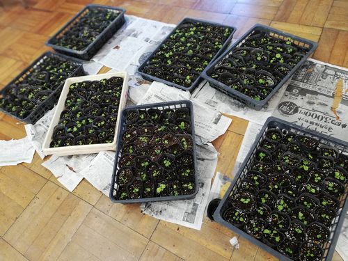 サクラソウが順調に育っています。 卒業式には立派な花が咲くよう、お世話をしていきます。   |