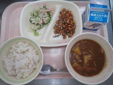 カレーライス・大豆のカリカリ揚げ・ハムと大根のサラダ・