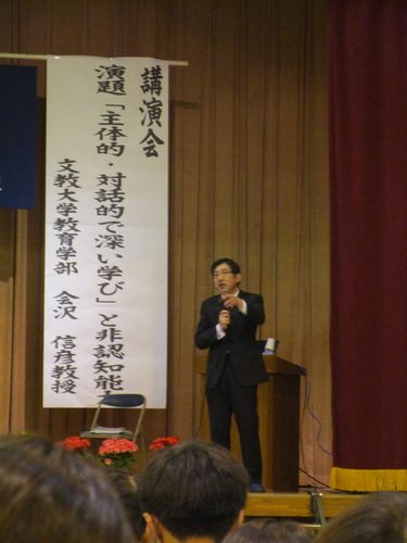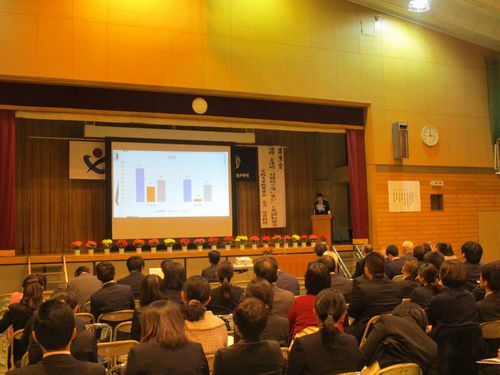11月15日 (木)150名の市内の先生方や学校運営協議会の皆様にご参会いただき、2年間の研究発表を行いました。先生方や講演講師の文教大学 会沢教授からも、生徒がにこやかに楽しく協調して話し合い、学び合っているとお褒めの言葉をいただきました。それが学力を向上させているとのことでした。これからも学力だけでなく非認知能力(自制心、自己効力感、勤勉性、やり抜く力)を高めていきます。