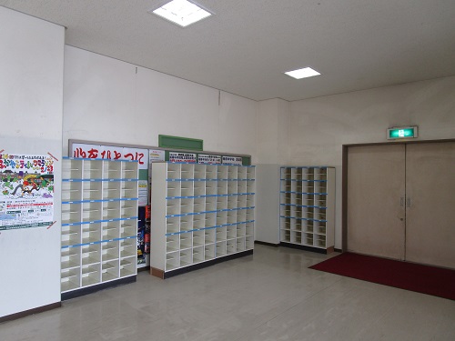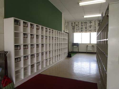 体育館にも下足入れを設置して、部活動時に靴を整然と置くことができるようにしました。
