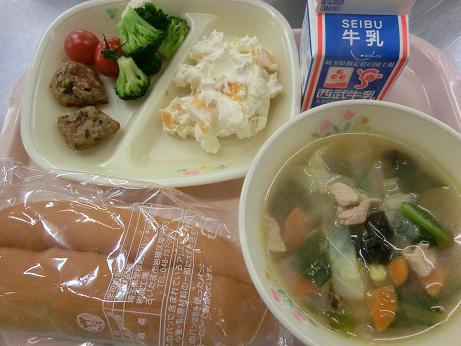 きょうは、 フルーツクリームサンド・牛乳・ひじき入りつくね ブロッコリー&ミニトマト・野菜コンソメスープでした。 コッペパンにフルーツクリームをはさんで食べる献立でした。 野菜コンソメスープは、きゃべつがたっぷりと入った具だくさん のスープで残りがほとんどありませんでした。 |