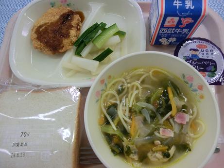 メニューです。「スープスパゲッティ」は、にんにく、セロリを炒め