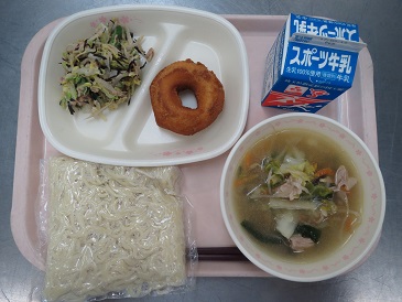 タンメン・たまごドーナツ・ヘルシーサラダ・スポーツ牛乳(250ml)