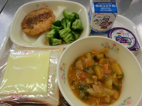 ハムかつチーズサンド・牛乳・夏野菜のラタトゥイユ