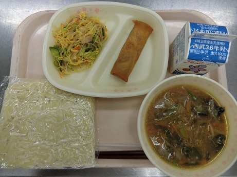 ごまみそラーメン・春巻き・中華サラダ・牛乳