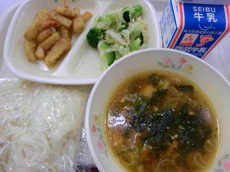 わかめが入っていて、今までの給食のラーメンとはひと味変わった