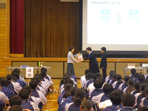 本日、一般社団法人 日本アンガーマネジメント協会の飯田陽子さんを講師に迎えて、アンガーマネジメントをテーマに学校保健委員会の講演会を行いました。なぜ怒りを感じるのか、その時どうしたら良いのか話を聞き、生徒全員が具体的な対処法を考えました。