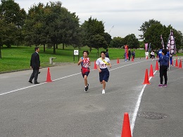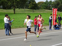 10月24日(火)埼玉県中学校駅伝の各地区予選会が熊谷文化公園陸上競技場で行われ、本校男子は見事最終6区で逆転し、平成27年度以来の優勝を成し遂げました。1区は長距離エース宮田、1位からやや遅れるも好位置で襷を渡すと2区水野は自己新の快走で3区森へ、森も力走し先行逃げ切りを図ろうとする藤中を4区清水、5区進藤で追い上げると最終6区村川は、区間賞の走りで先頭をとらえ、そのまま深谷市1位でテープを切りました。県大会は11月4日に同競技場で開催されます。女子は3位でした。また、Bチームは男女共1位でした。