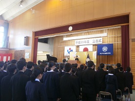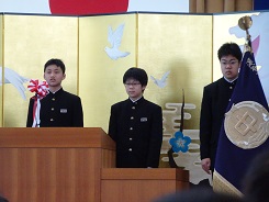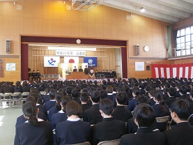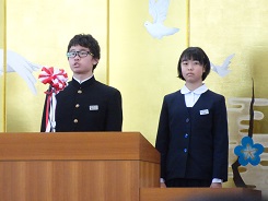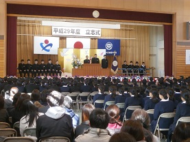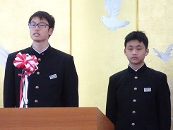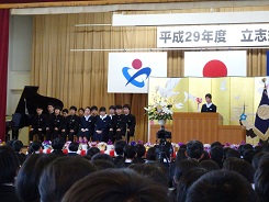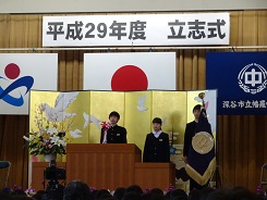 3月17日(土)立志式を行いました。今年は、2年生全員がステージ上で発表しました。どの生徒の発表も素晴らしく感動しました。発表内容については、職場体験学習での経験を生かしたものや日頃の生活の中から夢を見つけたものなど様々でした。発表する立ち居振る舞いもよく練習してあり、素晴らしいものでした。また、1年生は、座右の銘を書き、掲示しました。