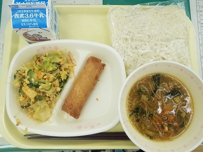 ごまみそラーメン・春巻き・中華サラダ・牛乳