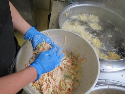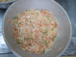 このようにして、620個のかき揚げを作るのに約2時間かかります。