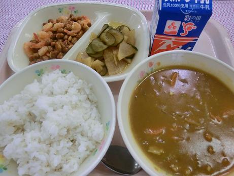 カレーの献立の日は定番の「大豆のカリカリ揚げ」と「手作りの