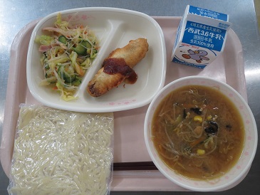 ごまみそラーメン・アメリカンドッグ・春雨サラダ・牛乳