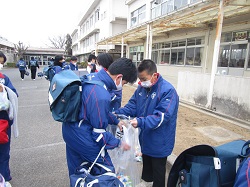 【学校から御家庭へお願い】 感染症を予防する観点から,引き続き,以下の 点に御留意いただきますよう,お願いいたします。 1 規則正しい生活習慣を徹底してください。 2 発熱等の風邪症状がみられる場合,無理をさ せないようにしてください。 3 基本的な感染症防止対策を徹底してください。 (密の回避,石鹸と流水による手洗い,うがい, 適切な換気と保湿,必要に応じたマスクの着用) 4 不要不急の外出を避け,可能な限り速やかに 帰宅してください。 5 子供のみの会食等は,自粛してください。 ※ 部活動への参加については,お子さんに発 熱等の風邪症状が見られる場合には,無理を させないよう,お願いいたします。