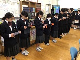 幡羅中学校では、校長講話、道徳授業、栄一翁給食などを行いました。