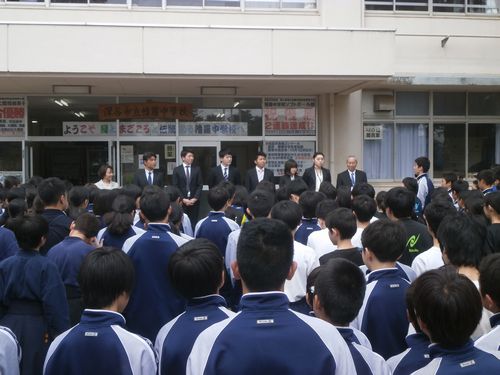 4月2日(月) 「はじめまして!」 30年度がいよいよスタートしました。 転入教職員を多くの生徒達が大きなあいさつと 温かい拍手で迎えてくれました。 8名の教職員が ・島﨑校長、 塚越教諭、長谷川教諭、岩田教諭 ・高橋け教諭、高橋か教諭、石川教諭、清水教諭が 市教育委員会の辞令交付式の後、 幡羅中学校に着任しました。 生徒会代表のあいさつや生徒の様子をみて 島﨑校長から改めて「本当に幡羅中は素晴らしい学校ですね。 さらに躍進できるよう、皆さん、一緒にチーム幡羅中で頑張りましょう。」と お話がありました。 |