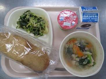 きな粉揚げパン・白菜と肉団子のスープ・和風サラダ・
