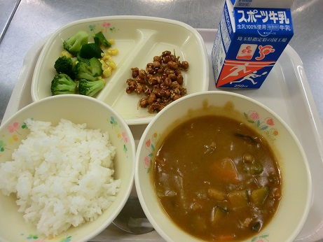 夏野菜のカレー・牛乳・大豆とじゃこの甘辛揚げ・