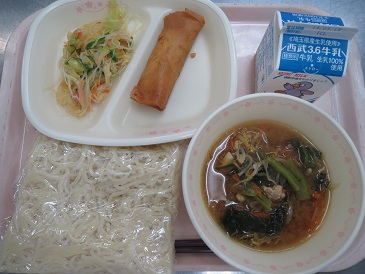 ごまみそラーメン・春巻き・春雨サラダ・牛乳