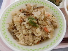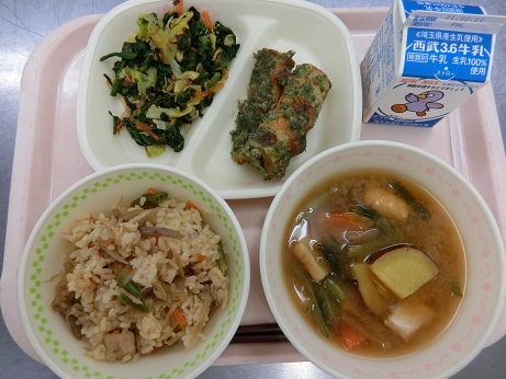 雷ごはん・ちくわの磯辺揚げ・磯の香あえ・さつまのみそ汁・牛乳