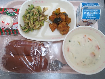 2学期最終日の給食は、冬至&クリスマスに因んだメニューです