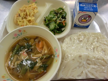 山菜おろしうどん・牛乳・かき揚げ・ひじきサラダ