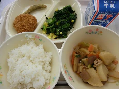 きょうは、 ごはん・牛乳・豚肉と大根の煮込み・ミックスフライ ほうれん草の和風サラダでした。 大根は日本の代表的な野菜で、古くから各地で改良されて きたので100以上の品種があるそうです。大根の煮物が おいしい季節になりました。大根の葉の部分には、ビタミンC を含み、ビタミンAも豊富なのでぜひ利用したいです。