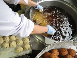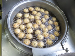 火が通りやすいように、真ん中をくぼませながら揚げていきます。