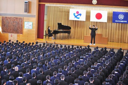 初めて幡羅中学校のあいさつ運動と、体育館がゆれるような素晴らしい全力校歌を