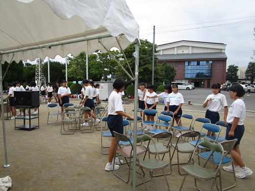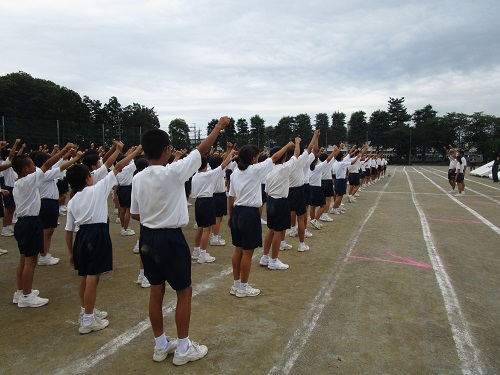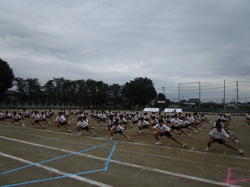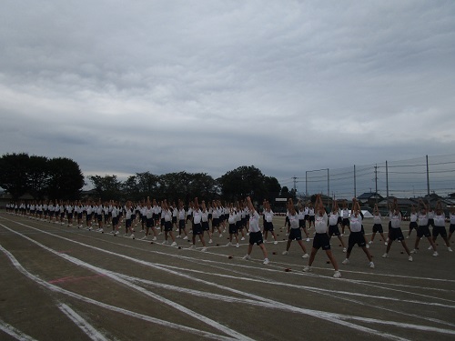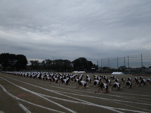体育祭前最後の全校練習が行われました。実行委員からの力強い呼びかけで始まり、全校生徒のかけ声で締めくくりました。