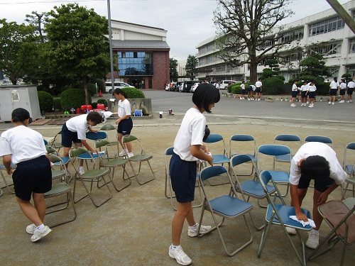 続く準備でも、石拾いやテントの準備など一生懸命取り組みました。椅子やテーブルも丁寧に拭いてくれました。