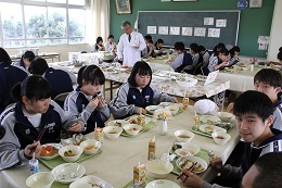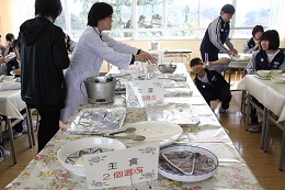 すべてのクラスで行われたバイキング給食は、本日の3年4組をもって終了です。石井栄養教諭さん、調理員の皆さん、ありがとうございました。