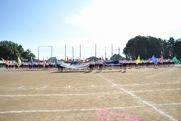 秋晴れに恵まれ、絶好の体育祭日和となり、幡羅中学校の70周年記念の体育祭の幕開けとなりました。