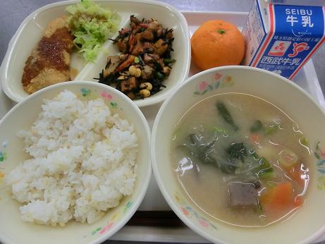 大豆の磯煮・おこと汁・みかん