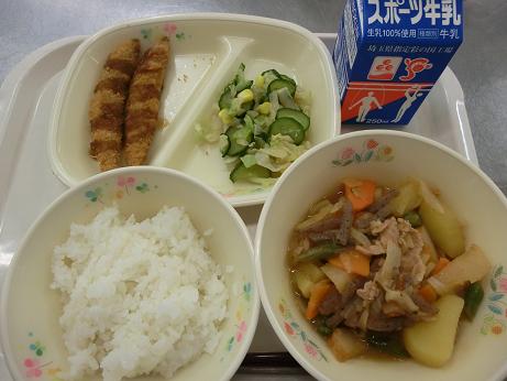 ごはん・牛乳・ししゃもフライ・肉じゃが・きゃべつと