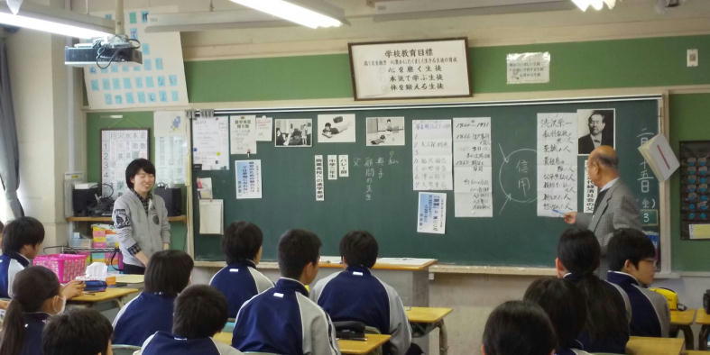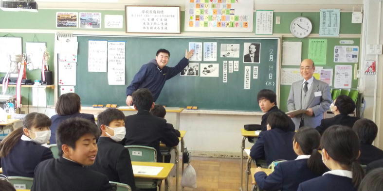 2月14日・15日の2日間、まごころ先生の授業をしました。 渋沢栄一記念館より篠田先生をを招き、誰に対しても人間としての良さを見いだし、自分を奮い立たせることで目指す生き方、誇りある生き方を考える心情を育むことのねらいとした授業を実施しました。  |