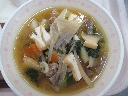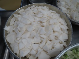 きょうの豚汁には、幡羅農園で収穫された大根が入っています